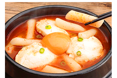 スンドゥブチゲにトッポギもちを加えて、韓国感やボリューム感UP!