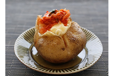 屋台の人気のじゃがバターに、キムチの辛味・酸味をプラスした腸活レシピ。