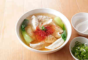 お好みの鍋やスープの具材として「粗挽き肉とザク切り野菜の大きな肉餃子」を入れ、火が通ったらできあがり。