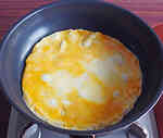 フライパンに油を入れ、 2 の卵を炒めて、器に一度取り出します。