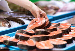 サーモン、めかじき、たら、さわら、たい、かれい、えび、ほたてなど