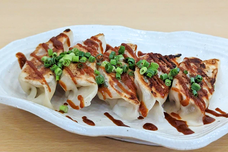 前回紹介した王道系の横堀餃子のトッピングを工夫して様々なアレンジ餃子を展開しています。香味野菜が控えめでシンプルな味付けの餃子なので、色々と味変をしてもぶつかり合わないのも横堀餃子の特徴なのかもしれませんね。